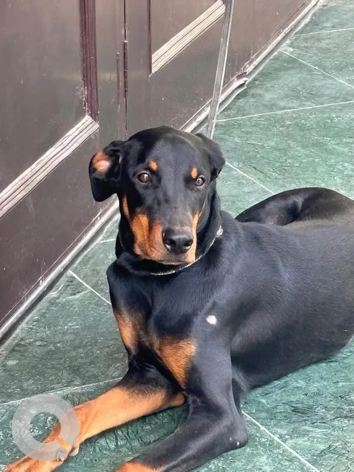 A Black and Brown Male Doberman Dog Missing from Ashoka Avenue, Ashoka Ave, Sainik Farms Colony, Sainik Farm, New Delhi, Delhi, 110062, India on 2025-09-29. Dog name is Mirza and quick identifications are Black collar. If you have any information, please contact on information provided.