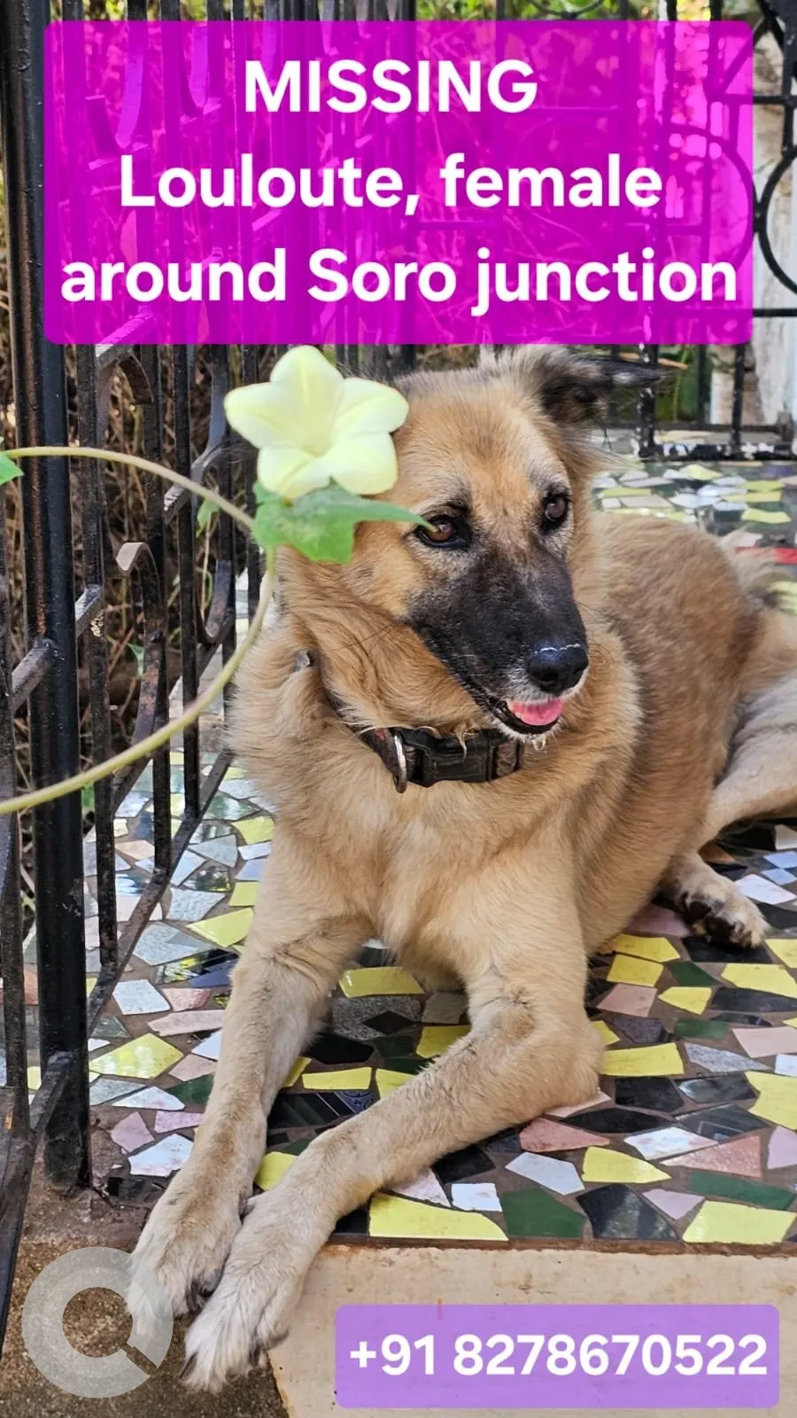 A Black and Brown Female German Shepherd Dog Missing from Assagao Soro Junction, Rajesh Hotel, Aguada - Siolim Road, Piqueno Chiwar, Anjuna, Badem, Bardez, North Goa, Goa, 403507, India on 2025-10-03. Dog name is Louloute and quick identifications are Not available. If you have any information, please contact on information provided.
