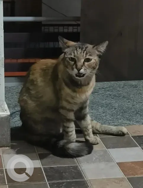 A Black and Brown Female Indie Cat Found from Ampath Labs (BTM 2nd Stage), K.No 396, Cellar Floor, 7th Cross, 8th Main Rd, Near Mico Layout, 7th Block, BTM 2nd Stage, Bengaluru, Karnataka, 560070, India on 2025-10-12. Cat name is Not Available and quick identifications are Not available. If you have any information, please contact on information provided.