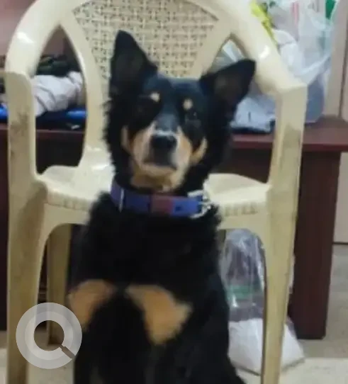 A Black and Brown Male Indie Dog Missing from Manjunath Nagar, Rajajinagar, Bengaluru, Karnataka, 560010, India on 2025-09-26. Dog name is Brownie and quick identifications are Blue collar. If you have any information, please contact on information provided.
