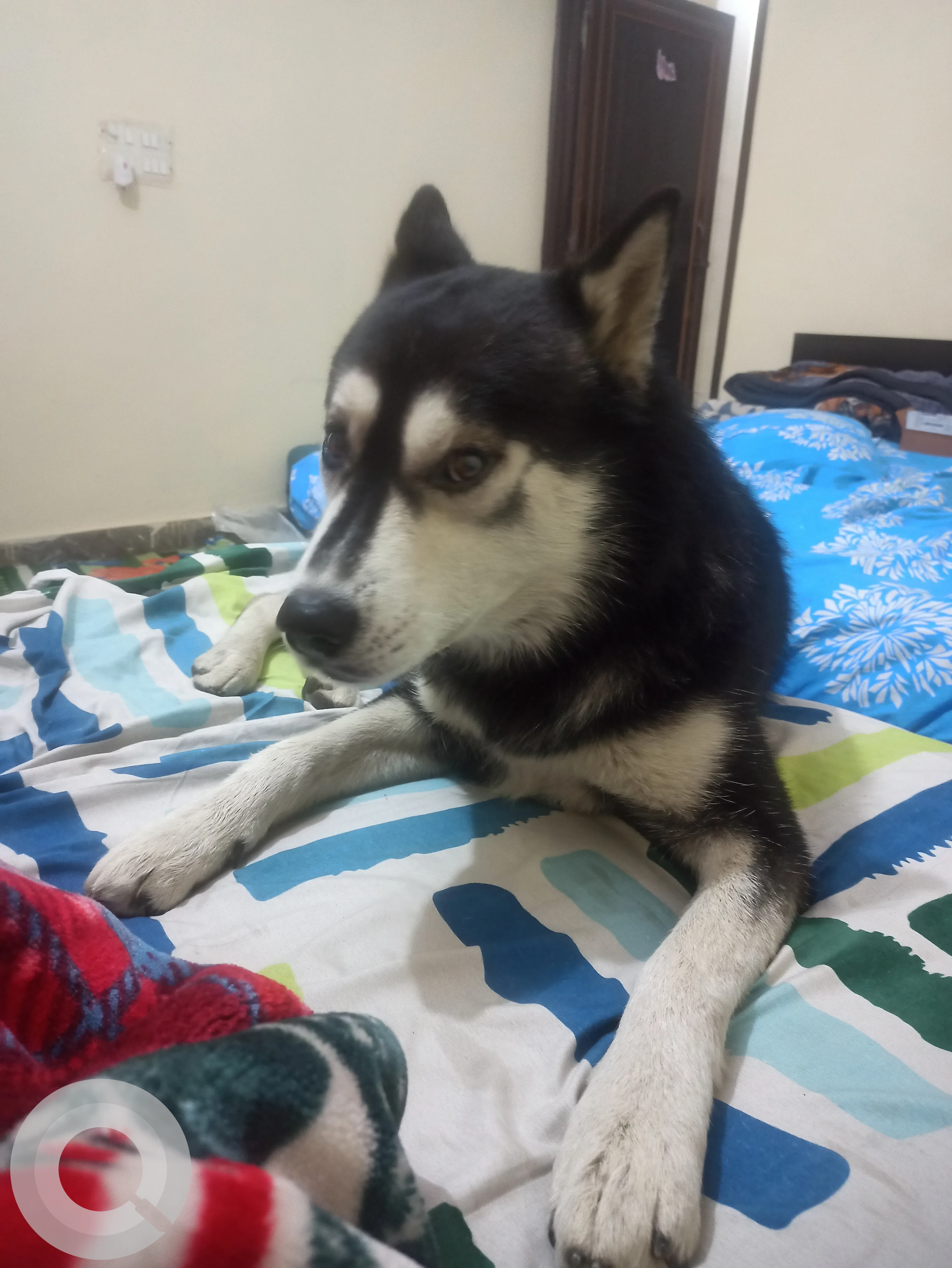 A Black and White Male Husky Dog Found from Grover Garments, A-458, 100 Feet Rd, Block B, Sant Nagar, Burari, Delhi, 110084, India on 2025-11-19. Dog name is Not available and quick identifications are Not available. If you have any information, please contact on information provided.