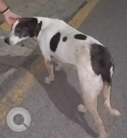 A Black and White Indie Dog Found from MB road, New Delhi