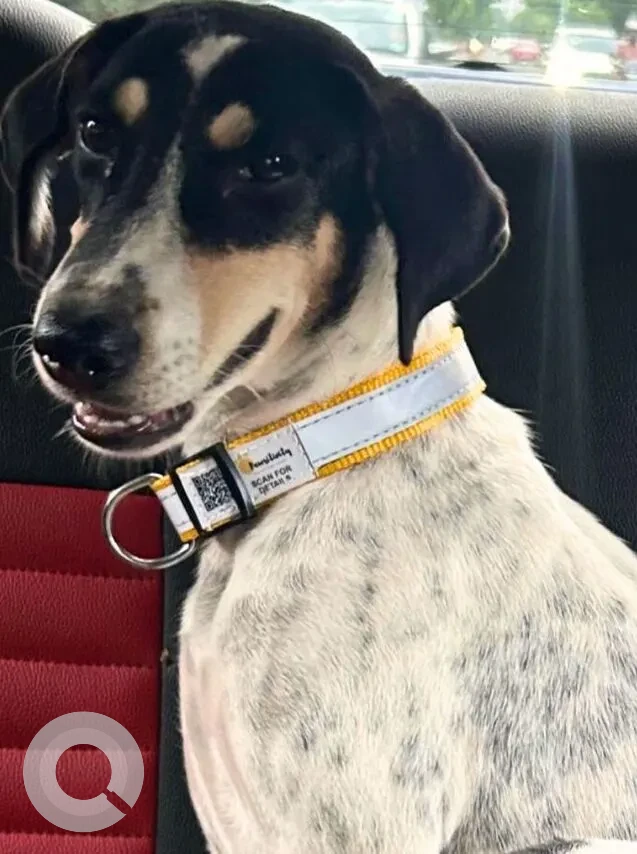 A Black and White Female Indie Dog Missing from Sector 132, Noida on 2025-11-03. Dog name is Beanie and quick identifications are Yellow collar. If you have any information, please contact on information provided.