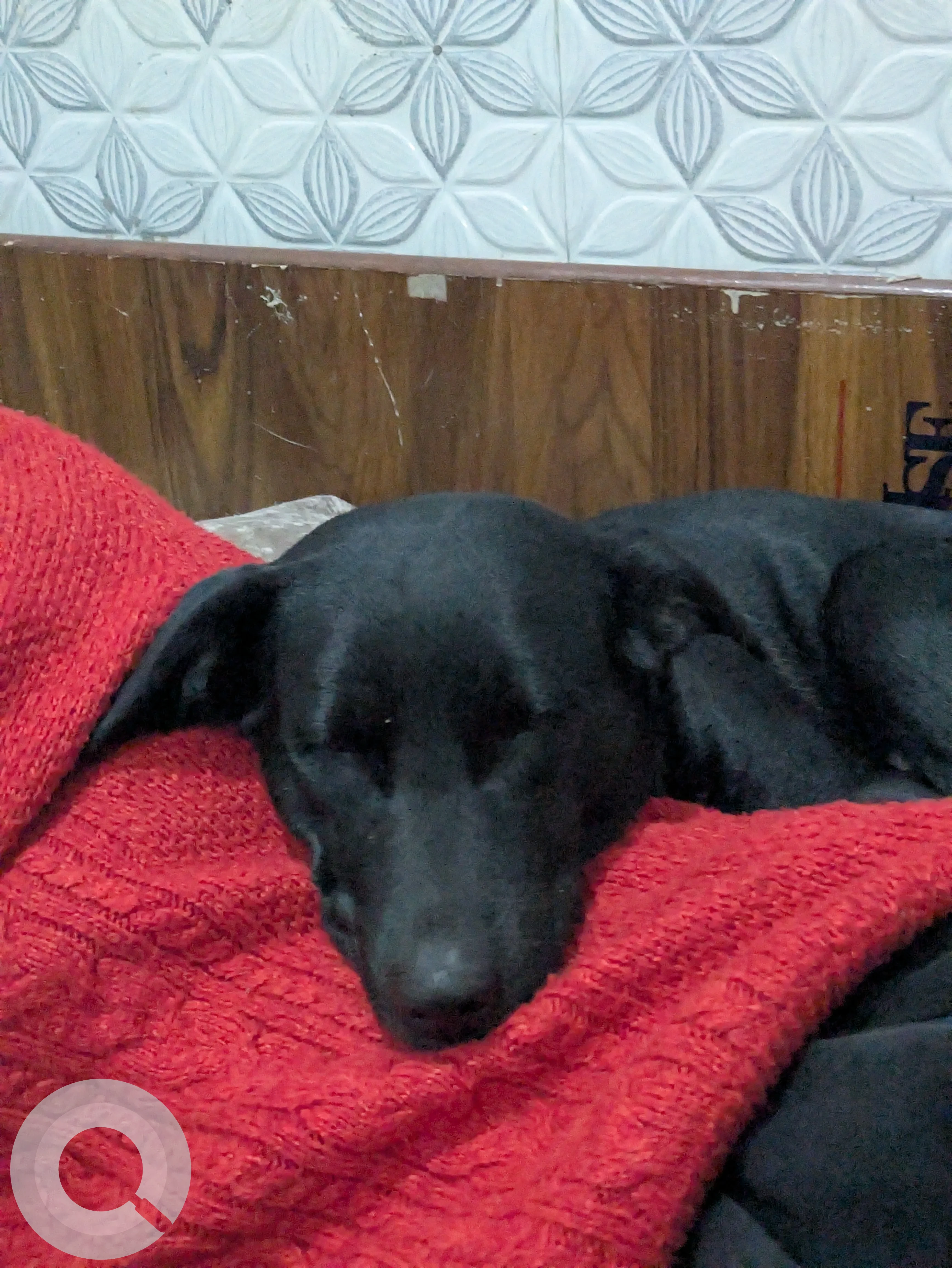 A Black Female India Dog Missing from Pari Digital Studio Sector 134 Noida, Wazidpur Rd, Wazidpur, Sector 134, Noida, Uttar Pradesh, 201304, India on 2025-11-20. Dog name is Kiwi and quick identifications are Mark on right nose under eye and hair patch lost on right back leg. If you have any information, please contact on information provided.