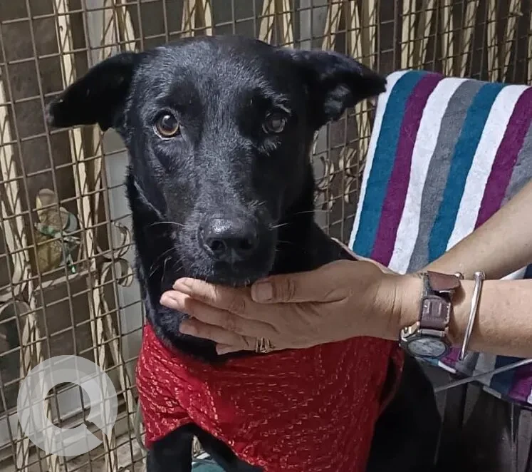 A Black Female Indie Dog Found from Hutchinson & Co India Pvt Ltd, 20/1, Cambridge Road, Cross, Halasuru, Cambridge Layout, Bengaluru, Karnataka 560008 on 2025-10-22. Dog name is Not Available and quick identifications are Blue collar, bell and red scarf. If you have any information, please contact on information provided.