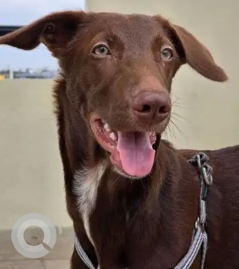 A Brown Male Indie and Labrador cross Dog Missing from Kothanur on 2025-11-18. Dog name is Coco/Cocochino and quick identifications are Chest Harness - Grey with White and Blue Stripe. If you have any information, please contact on information provided.