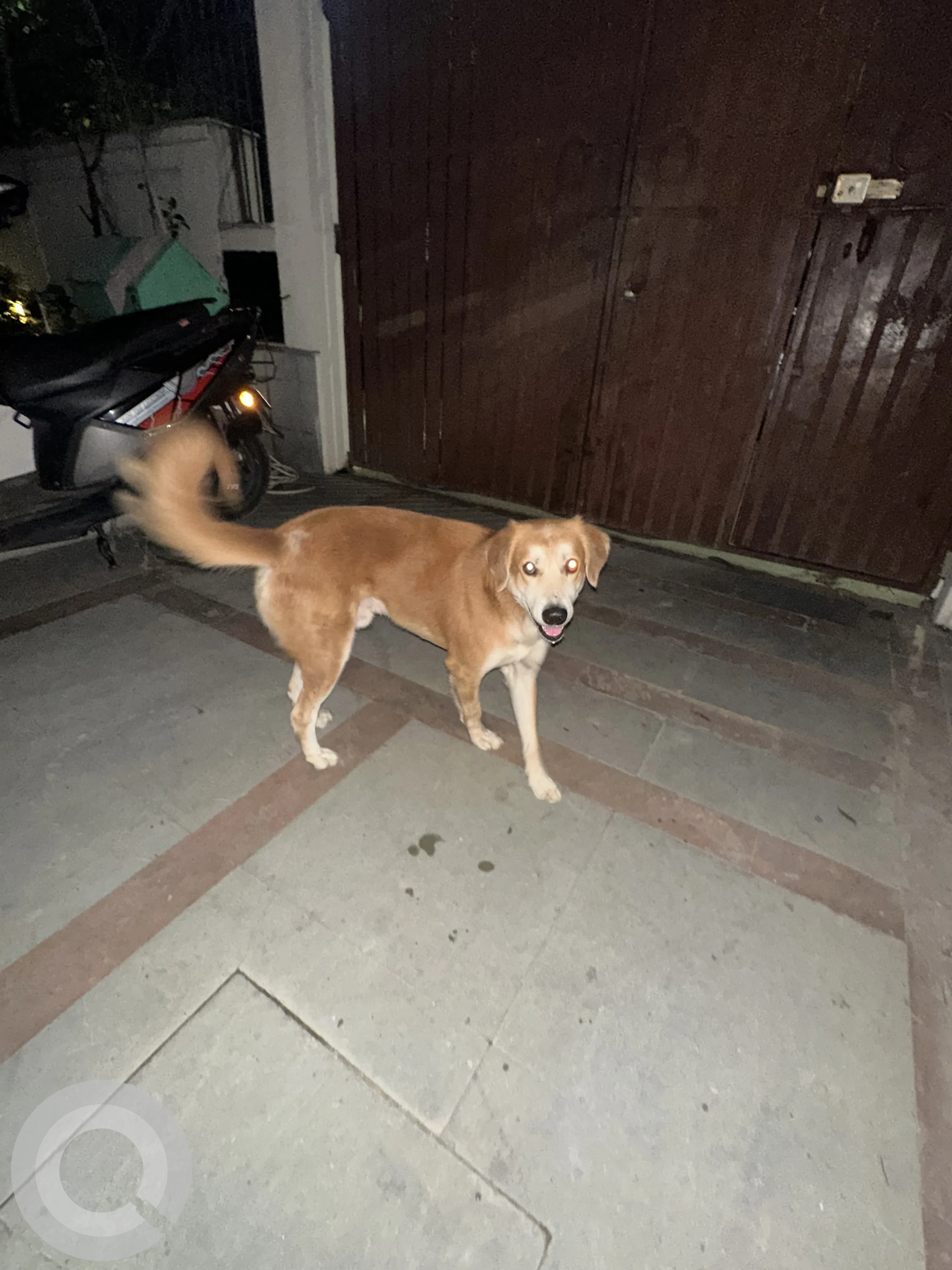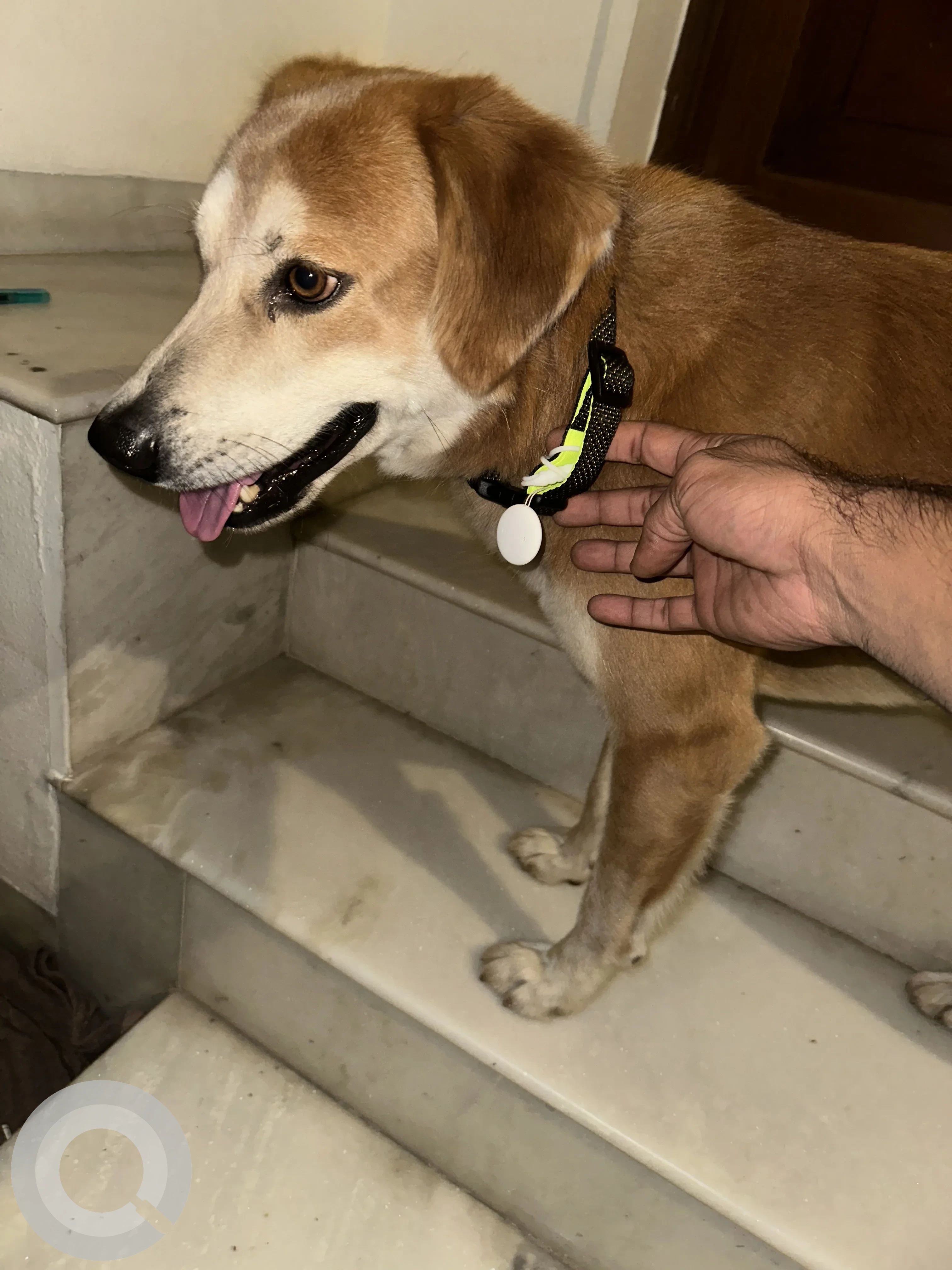 A Brown Male Indie Dog Found from Dlf phase 1 on 2025-10-11. Dog name is Rexzol and quick identifications are Black collar with a Protag attached. If you have any information, please contact on information provided.
