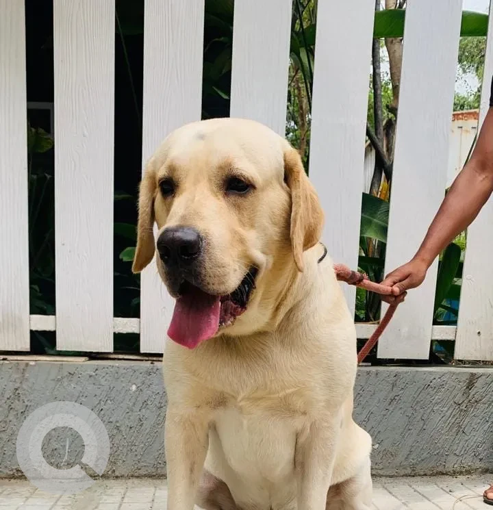 A Golden Male Labrador Dog Missing from JanAushadhi Kendra, Teachers Colony, Koramangala, 527, 1st Main Rd, Teacher's Colony, Santhosapuram, 1st Block Koramangala, Koramangala, Bengaluru, Karnataka, 560034, India on 2025-08-27. Dog name is Leo and quick identifications are Black collar. If you have any information, please contact on information provided.