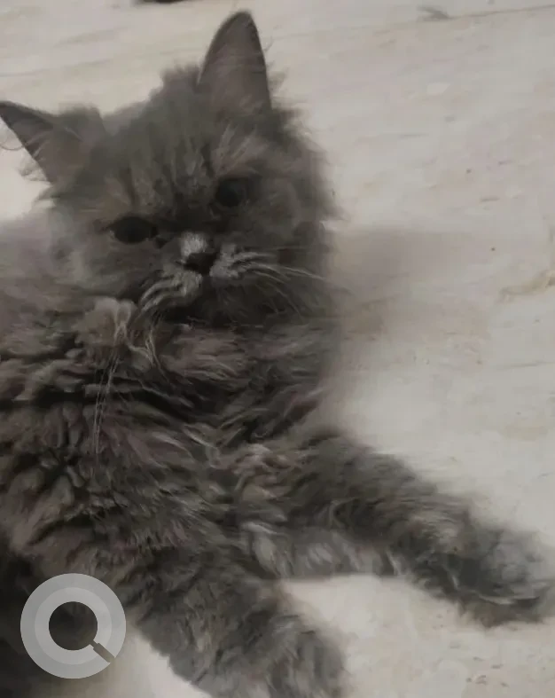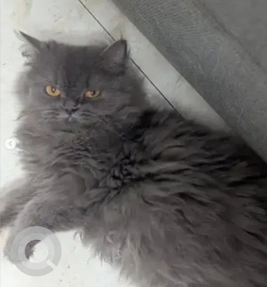 A Grey Female Persian Cat Missing from Peekay Home Needs, Rehamathnagara, RT Nagar, Bengaluru, Bangalore North, Bengaluru Urban, Karnataka, 560032, India on 2025-09-16. Cat name is Bella and quick identifications are Green collar with bell, responds to 'Babiees, fur was trimmed. If you have any information, please contact on information provided.