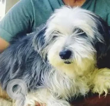 A Grey-White Mix Female Bearded Collie Dog Missing from Guni Agrahara, Chikkabanavara on 2025-10-24. Dog name is Shine and quick identifications are Hairy. If you have any information, please contact on information provided.