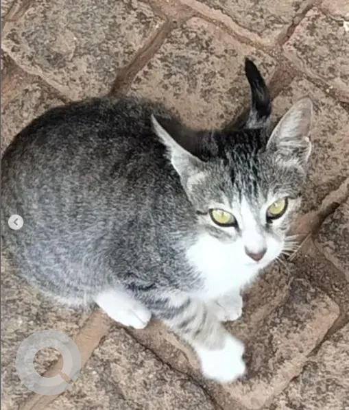 A Grey-White Mix Female Indie Cat Missing from Kempegowda Swimming Pool on 2025-10-30. Cat name is Siddhi and quick identifications are Black & grey stripes, white chest & paws, yellow eyes. If you have any information, please contact on information provided.