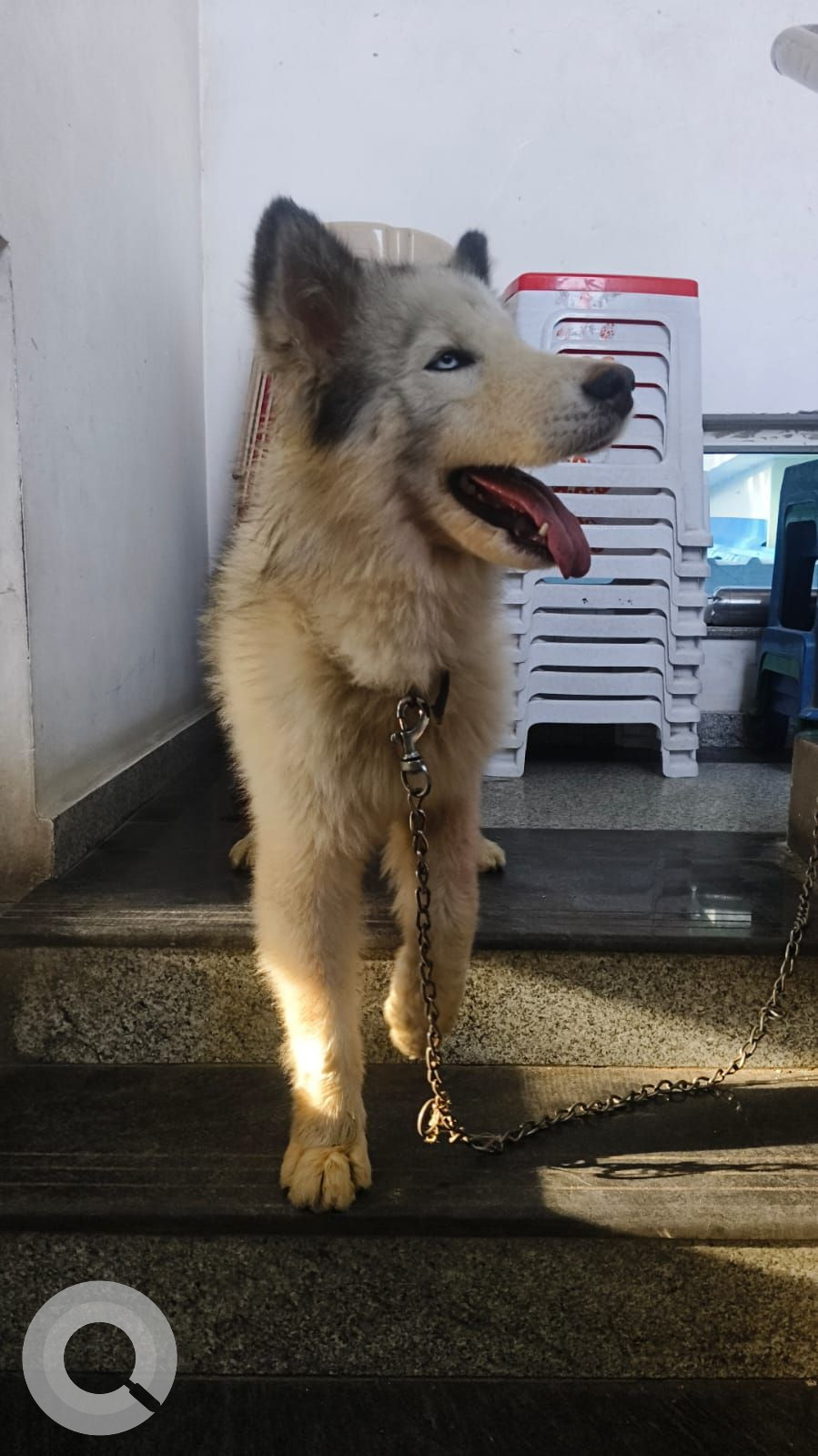 A White and Grey Male Husky Dog Found from Red Water Tank, Vanasthalipuram, Ward 15 Vanasthalipuram, Greater Hyderabad Municipal Corporation East Zone, Hyderabad, Ranga Reddy, Telangana, 500070, India on 2025-09-07. Dog name is Not Available and quick identifications are Chain collar. If you have any information, please contact on information provided.