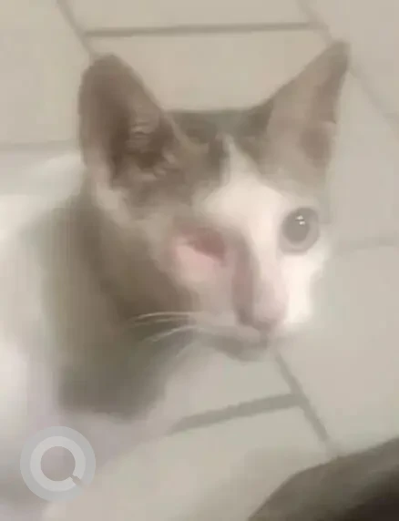 A White and Grey Male Indie Cat Missing from Agar Bazar Hindu Bakery, 23, Kashinath Dhuru Marg, Dadar West, Prabhadevi, Mumbai, Maharashtra, 400028, India on 2025-10-02. Cat name is Jeetu and quick identifications are Red collar, Blind in right eye. If you have any information, please contact on information provided.