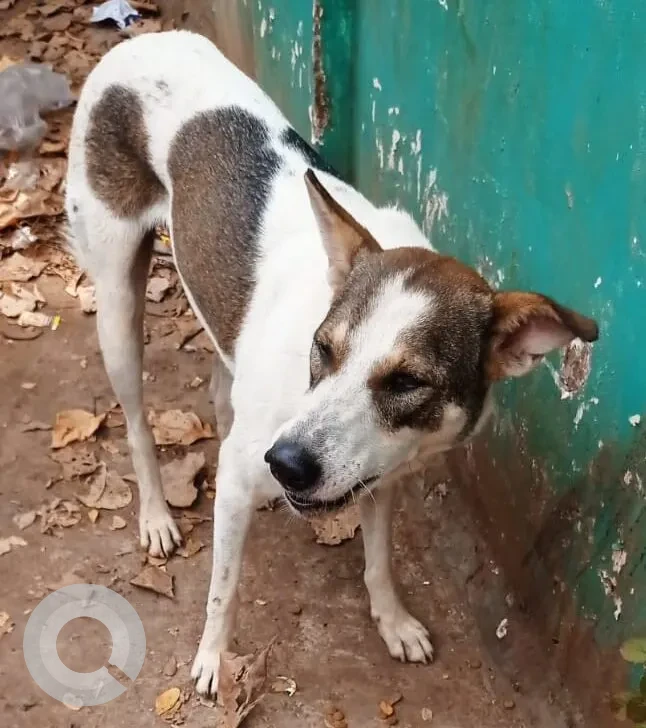 A White-Brown Mix Male Indie Dog Found from Starco Junction, Dmello Vaddo, Anjuna, Goa, 403509, India on 2025-10-09. Dog name is Not Available and quick identifications are Sterilized. If you have any information, please contact on information provided.