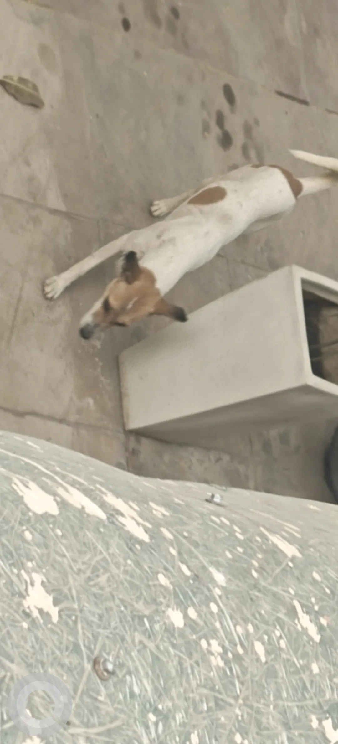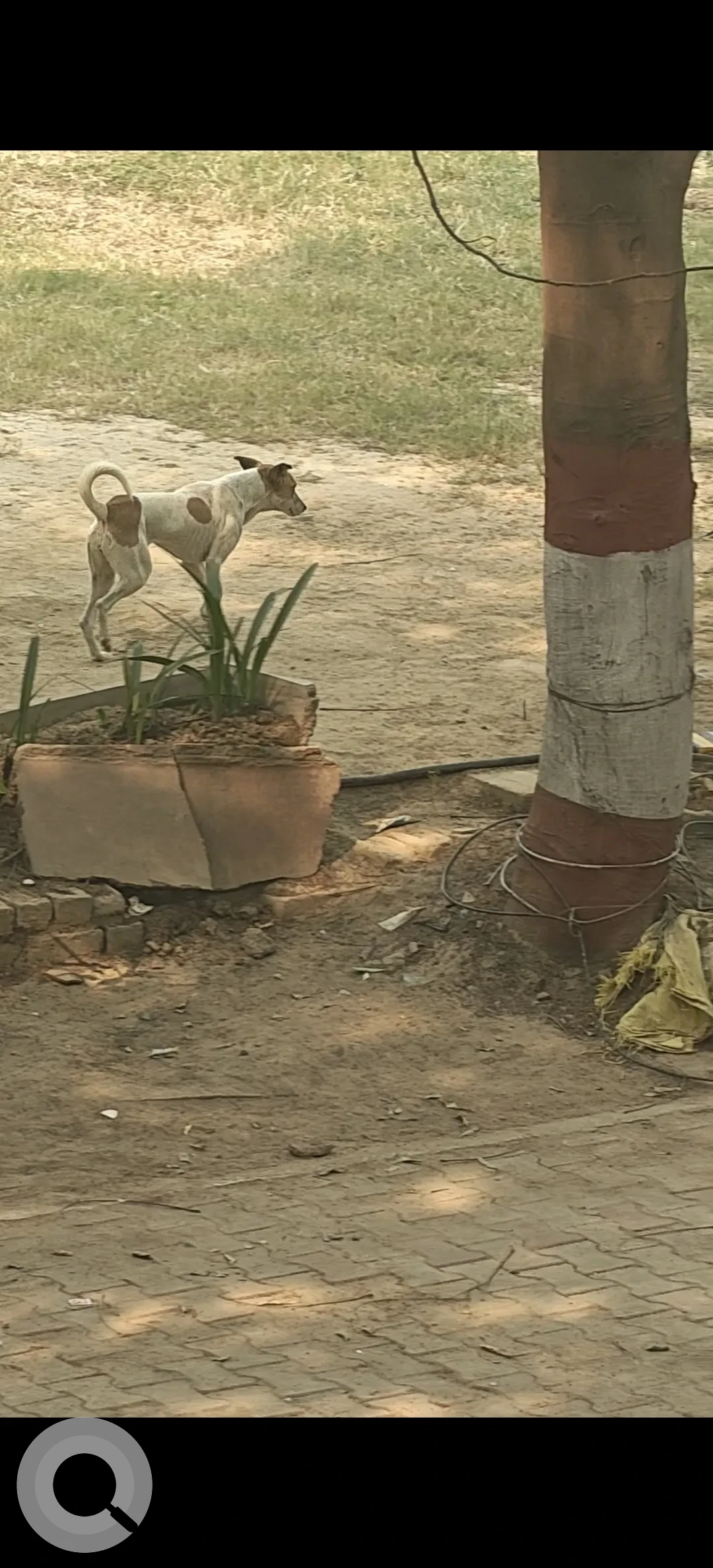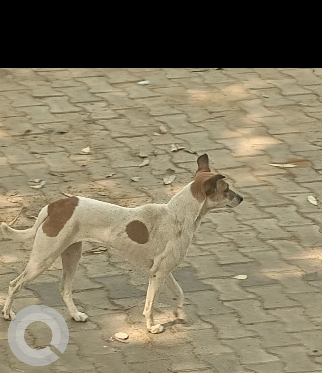 A White-Brown Mix Female Indie Dog Found from Ardee City, E Block, Sector 52 on 2025-11-09. Dog name is Not available and quick identifications are Two brown spots on right side,Brown face,white brown muzzle. If you have any information, please contact on information provided.