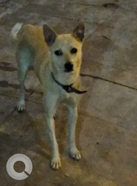 A White-Brown Mix Female Indie Dog Found from 627, 3rd Cross Rd, Koramangala 3 Block, Koramangala, Bengaluru, Karnataka, 560034, India on 2025-10-10. Dog name is Not Available and quick identifications are Black collar. If you have any information, please contact on information provided.