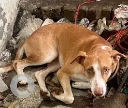 A White-Brown Mix Male Indie Dog Found from South Park Street, S Park St, Secretariat Colony, Venkatapuram, Ambattur, Chennai, Tamil Nadu, 600053, India on 2025-09-18. Dog name is Not Available and quick identifications are Red collar. If you have any information, please contact on information provided.