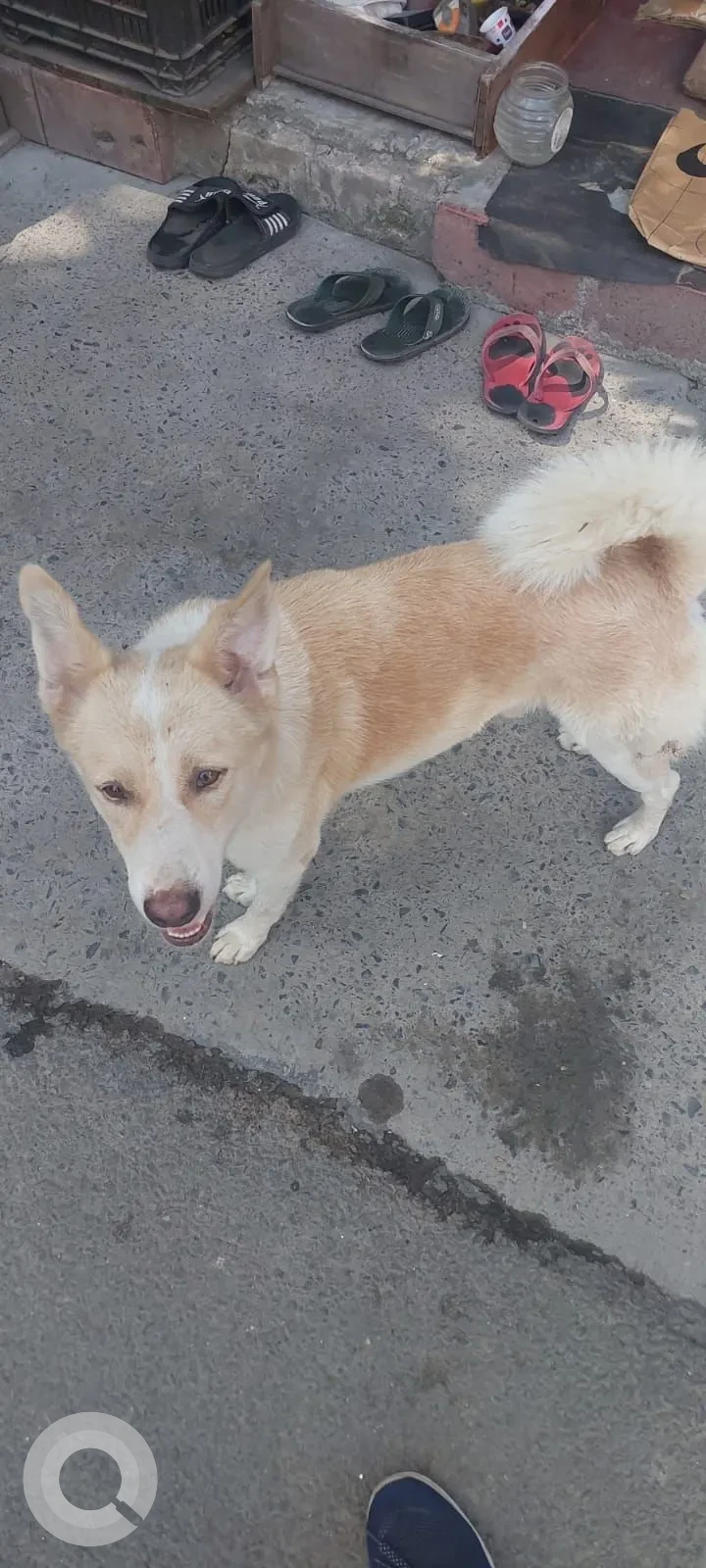 A White-Brown Mix Male Indie Dog Found from 164, M Block Rd, Block M, Greater Kailash II, Greater Kailash, New Delhi, Delhi, 110048, India on 2025-09-25. Dog name is Not Available and quick identifications are Not available. If you have any information, please contact on information provided.