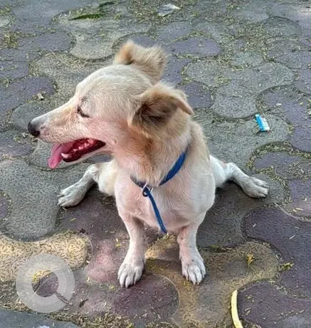 A White-Brown Mix Male Indie Dog Found from Nagarjuna Apartment A-Block, Nagarjuna Apartment, Chilla, Mayur Kunj, Noida, Delhi, 110096, India on 2025-09-28. Dog name is Not Available and quick identifications are Blue collar. If you have any information, please contact on information provided.