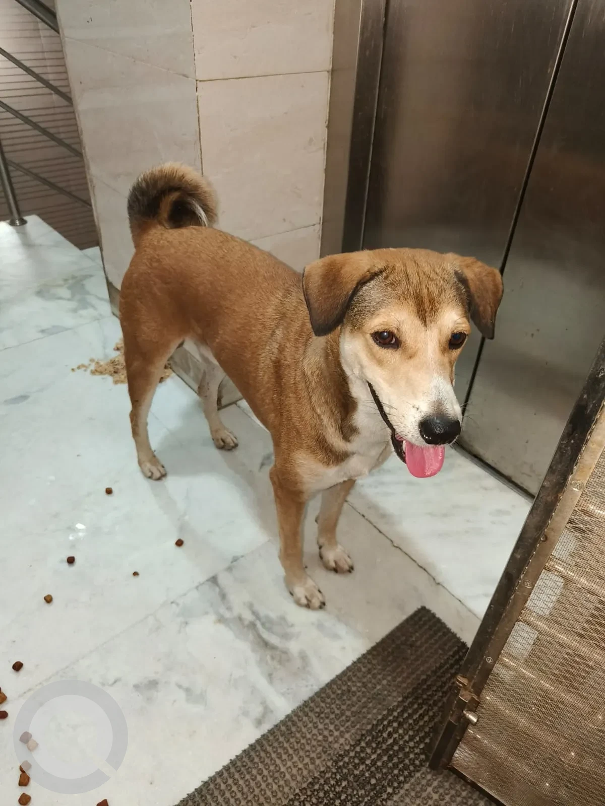 A White-Brown Mix Male Indie Dog Found from Boys PG In Gautam Nagar Green Park, Anand Lok, Gautam Nagar, Hauz Khas Tehsil, South Delhi, Delhi, 110049, India on 2025-10-03. Dog name is Not Available and quick identifications are Not available. If you have any information, please contact on information provided.
