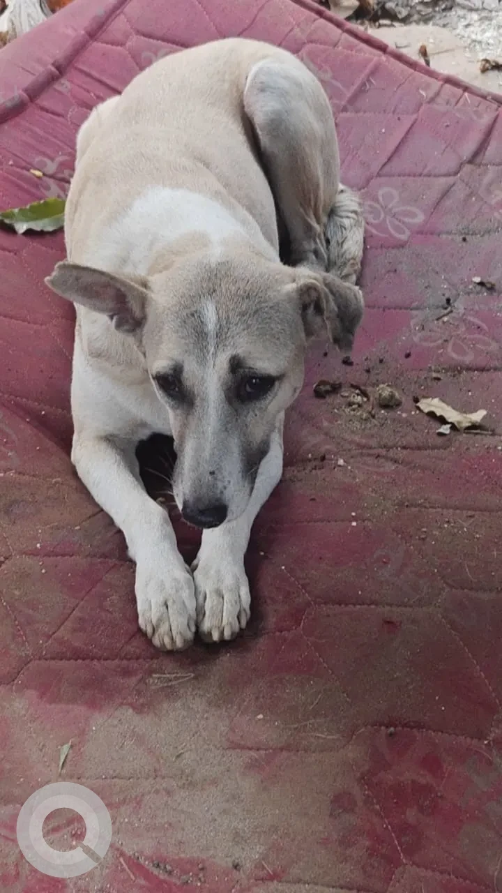 A White-Brown Mix Indie Dog Found from Ramprastha colony