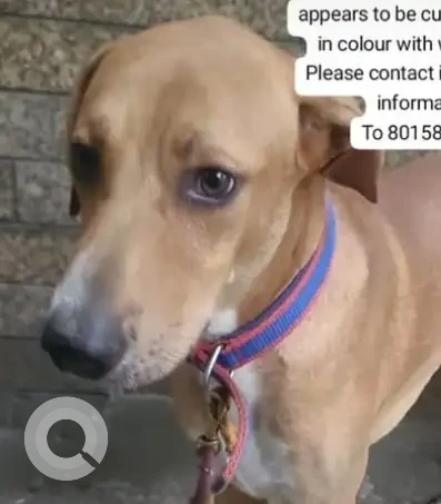A White-Brown Mix Male Indie Dog Found from Taj Club House on 2025-11-06. Dog name is Not Available and quick identifications are Blue collar. If you have any information, please contact on information provided.