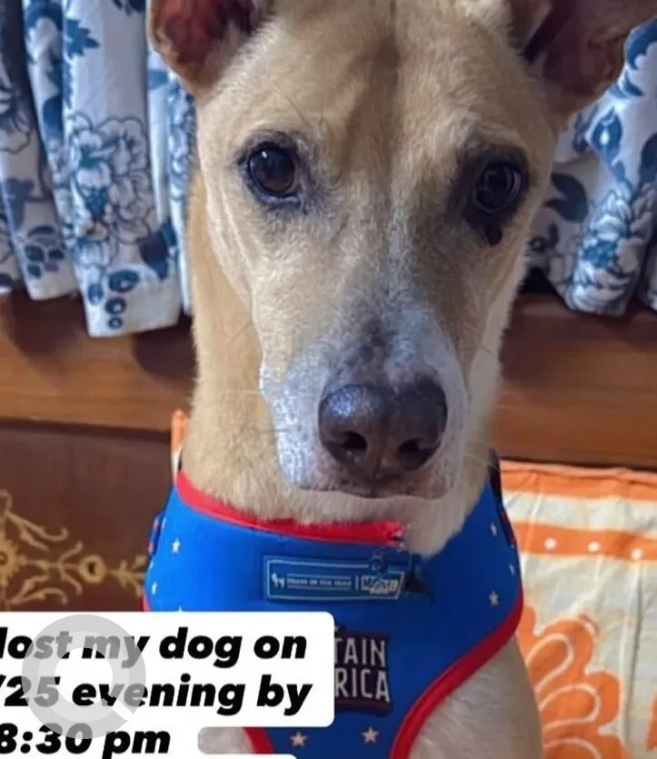 A White-Brown Mix Male Indie Dog Missing from New Delhi, Bahadurgarh, Delhi, India on 2025-10-13. Dog name is Tin Tin and quick identifications are Grey collar with black thread and portronic tracker. If you have any information, please contact on information provided.