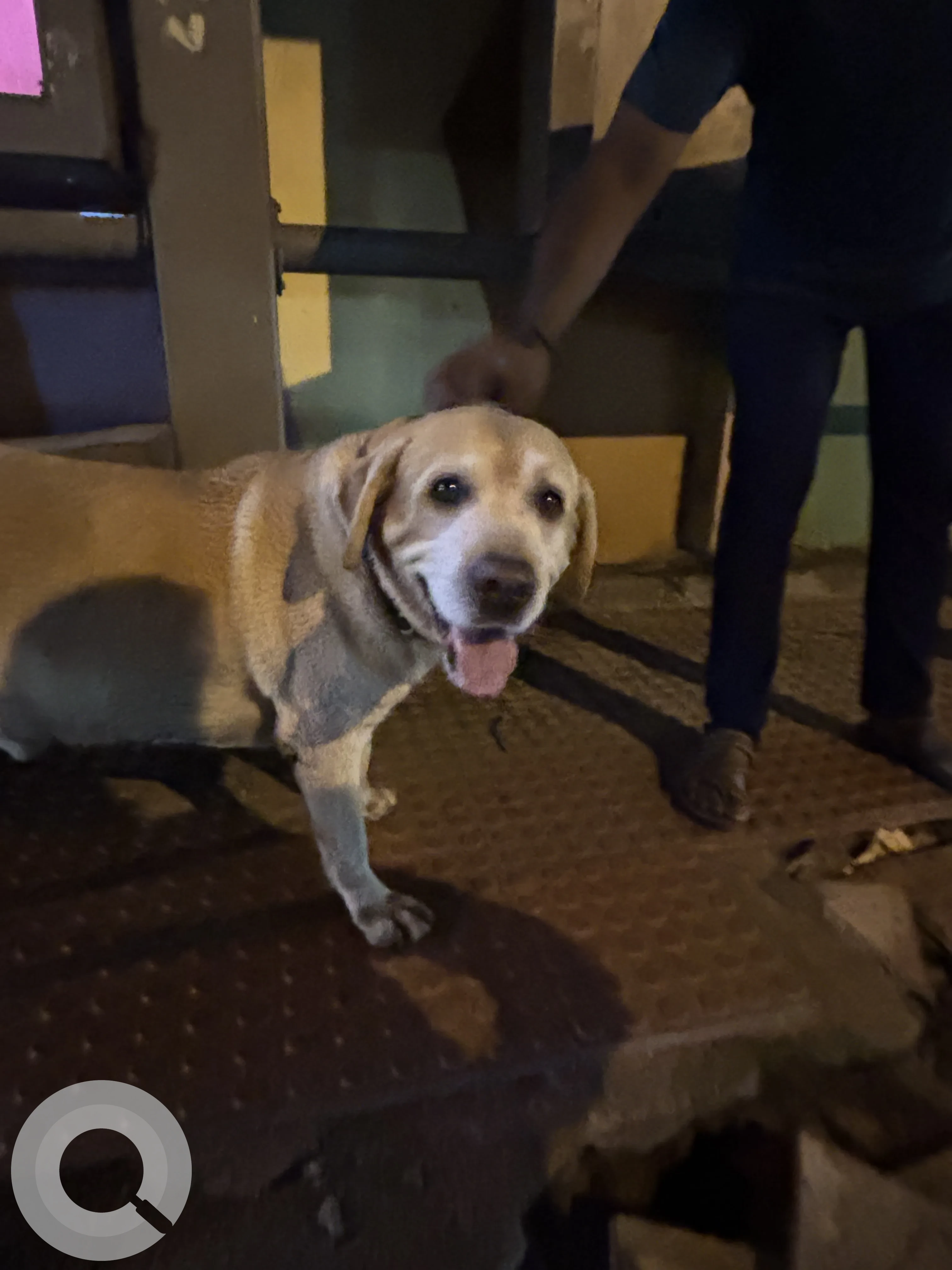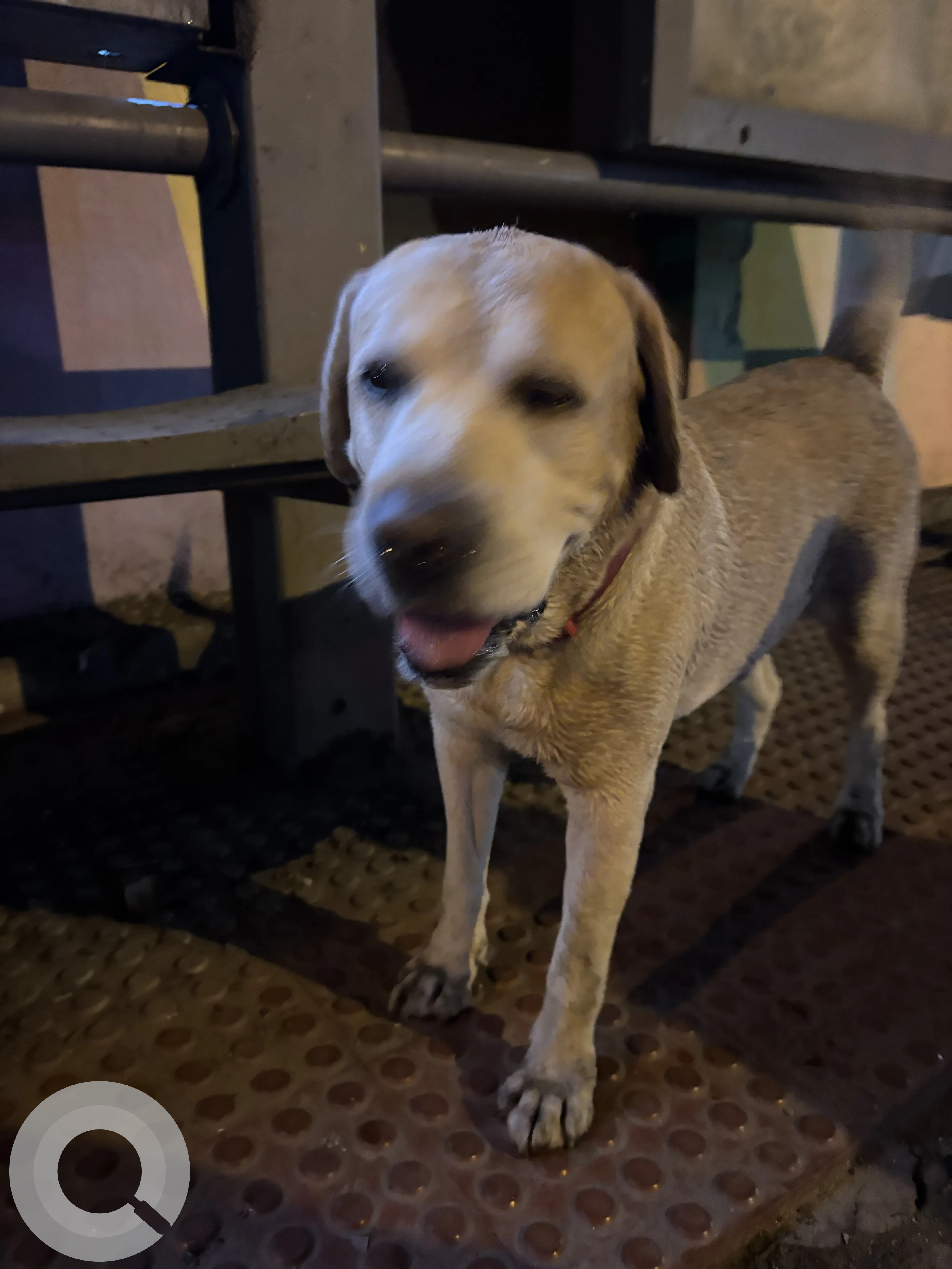 A White-Brown Mix Male Labrador Dog Found from HSR Layout, Bengaluru, Karnataka, 560102, India on 2025-10-11. Dog name is Not available and quick identifications are Is wearing a red collar. If you have any information, please contact on information provided.