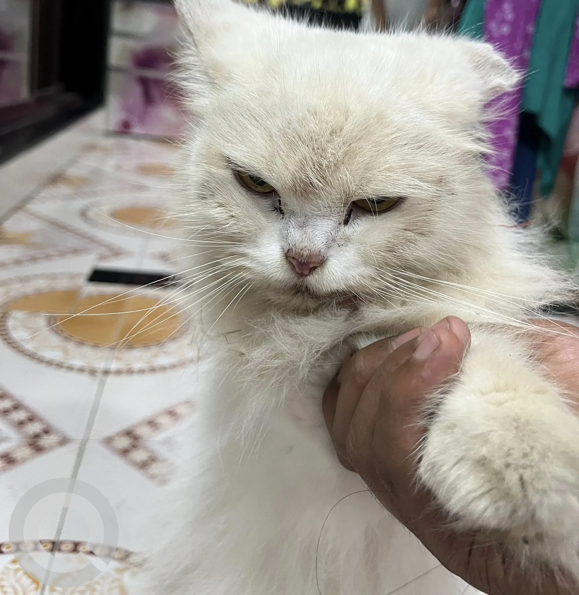 A White-Brown Mix Male Persian Cat Found from Rambaug Colony, Kothrud, Pune, Maharashtra, 411038, India on 2025-09-26. Cat name is Not Available and quick identifications are Not available. If you have any information, please contact on information provided.