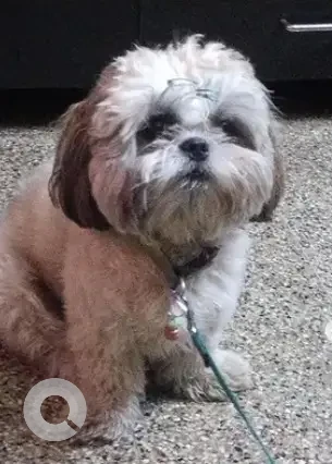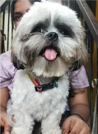A White-Brown Mix Female Shih Tzu Dog Missing from Muneshwara Block, KB Nagar, Palace Guttahalli, Bengaluru, Karnataka, 560003, India on 2025-10-11. Dog name is Rosie and quick identifications are Rainbow Collar. If you have any information, please contact on information provided.