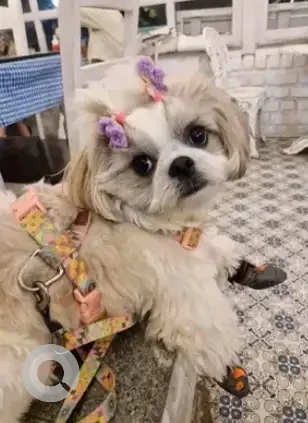 A White-Brown Mix Female Shih Tzu Dog Missing from El Santos PreSchool, Kothanur on 2025-11-28. Dog name is Tselha and quick identifications are Neck color is slight yellow. If you have any information, please contact on information provided.