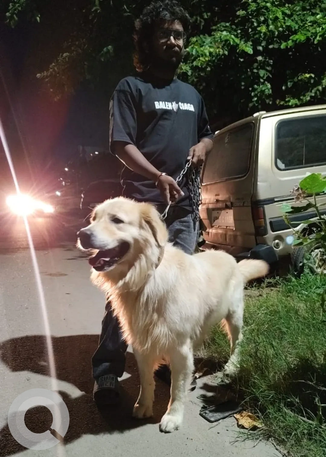 A White Male Golden Retriever Dog Found from Jupally Swimming Pool, Pool Road, Near Shaili Gardens, Bapu Nagar, Shaili Gardens, Sainikpuri, Secunderabad, Telangana, 500094, India on 2025-08-25. Dog name is Not Available and quick identifications are Not available. If you have any information, please contact on information provided.