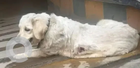 A White Female Golden Retriever Dog Found from Elior Hennur Kitchen, Unnamed Road, RK Hegde Nagar, Bengaluru, Karnataka, 560077, India on 2025-09-27. Dog name is Not Available and quick identifications are Blue collar, Cream Retriever. If you have any information, please contact on information provided.