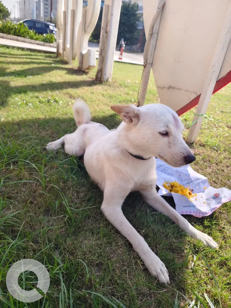 A White Female Indie Dog Found from Ola Electric Store, Kulesara, Noida, Gali No: 02, Dadri Road, Kulesara, Noida, Uttar Pradesh 201306 on 2025-09-23. Dog name is Not Available and quick identifications are Not available. If you have any information, please contact on information provided.