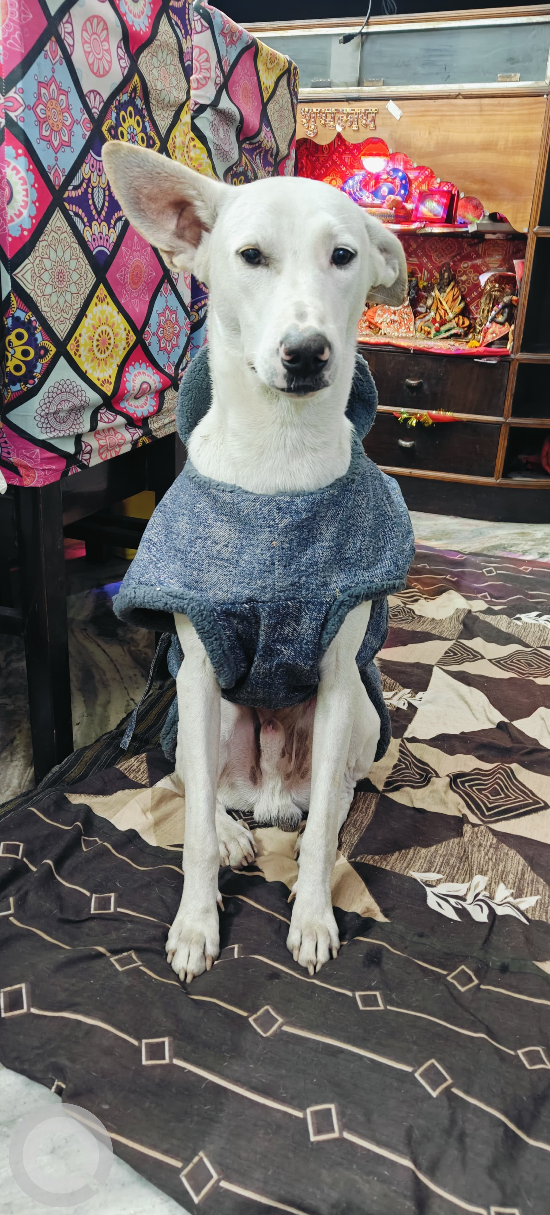 A White Male Indie Dog Missing from Vasundhara Sector 1 Ghaziabad on 2025-01-15. Dog name is Whitey and quick identifications are Mark on nose. If you have any information, please contact on information provided.