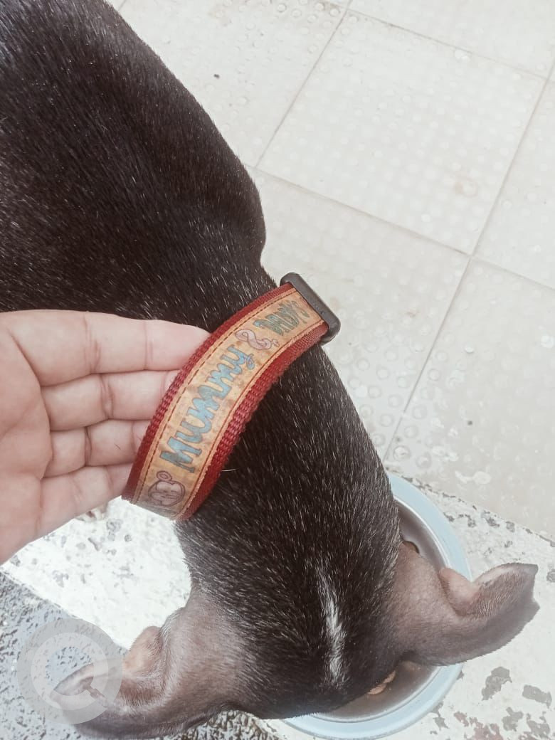 Urgent: A Black and Brown Female Indie Dog Found from Seawoods, Navi Mumbai on 2024-07-13. Dog name is Not Available and quick identifications are Red collar with mummy and daddy monkey engraved with it.. If you have any information about the Dog, please contact on information provided.
