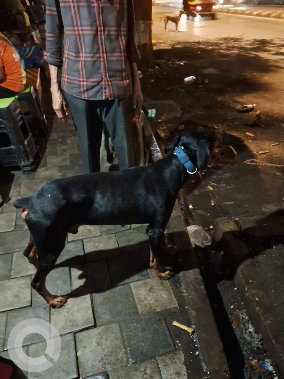 Urgent: A Black and Brown Male Doberman Dog Found from Seven Bungalows, Versova, Andheri, Mumbai on 2024-06-21. Dog name is Not Available and quick identifications are Blue choker collar. If you have any information about the Dog, please contact on information provided.