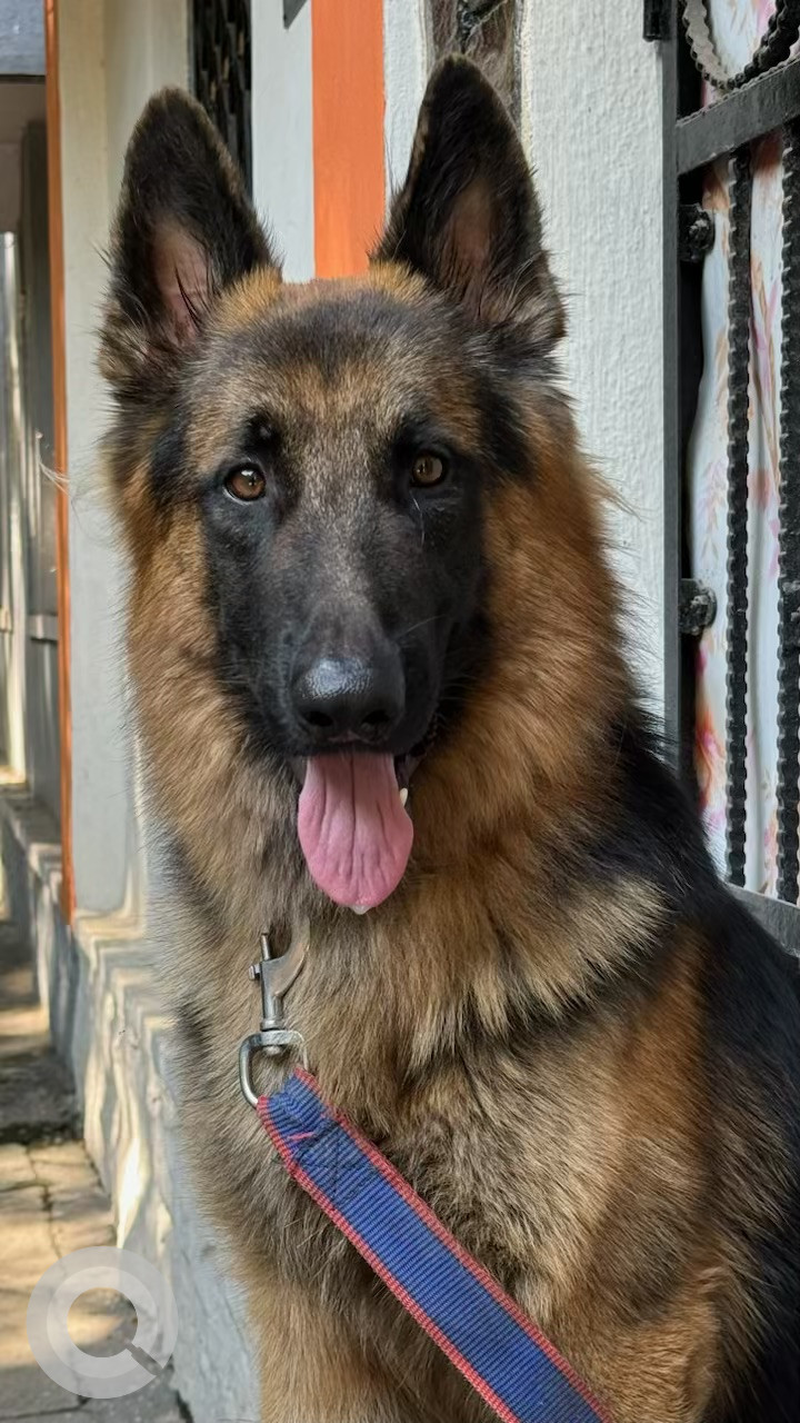 A Black and Brown Male German Shepherd Dog Found from Esamia Bazar, Koti on 2024-06-25. Dog name is Not available and quick identifications are Orange collar. If you have any information, please contact on information provided.