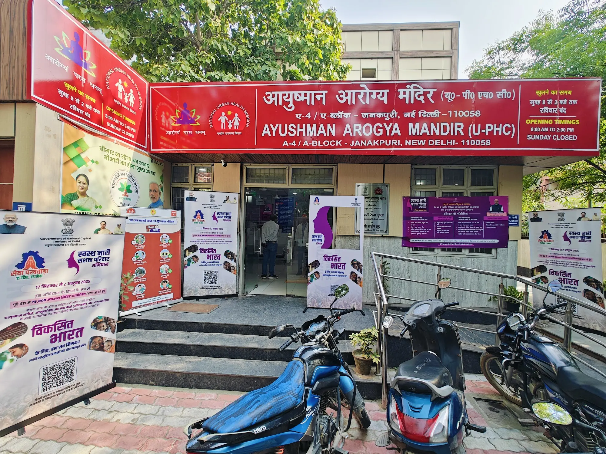 Ayushman Arogya Mandir of A-4/A Block of Janakpuri provides free basic health services near you. Get doctor consultations, essential medicines, tests like BP and sugar checks, vaccinations, maternal care and wellness support like yoga - all at no cost.