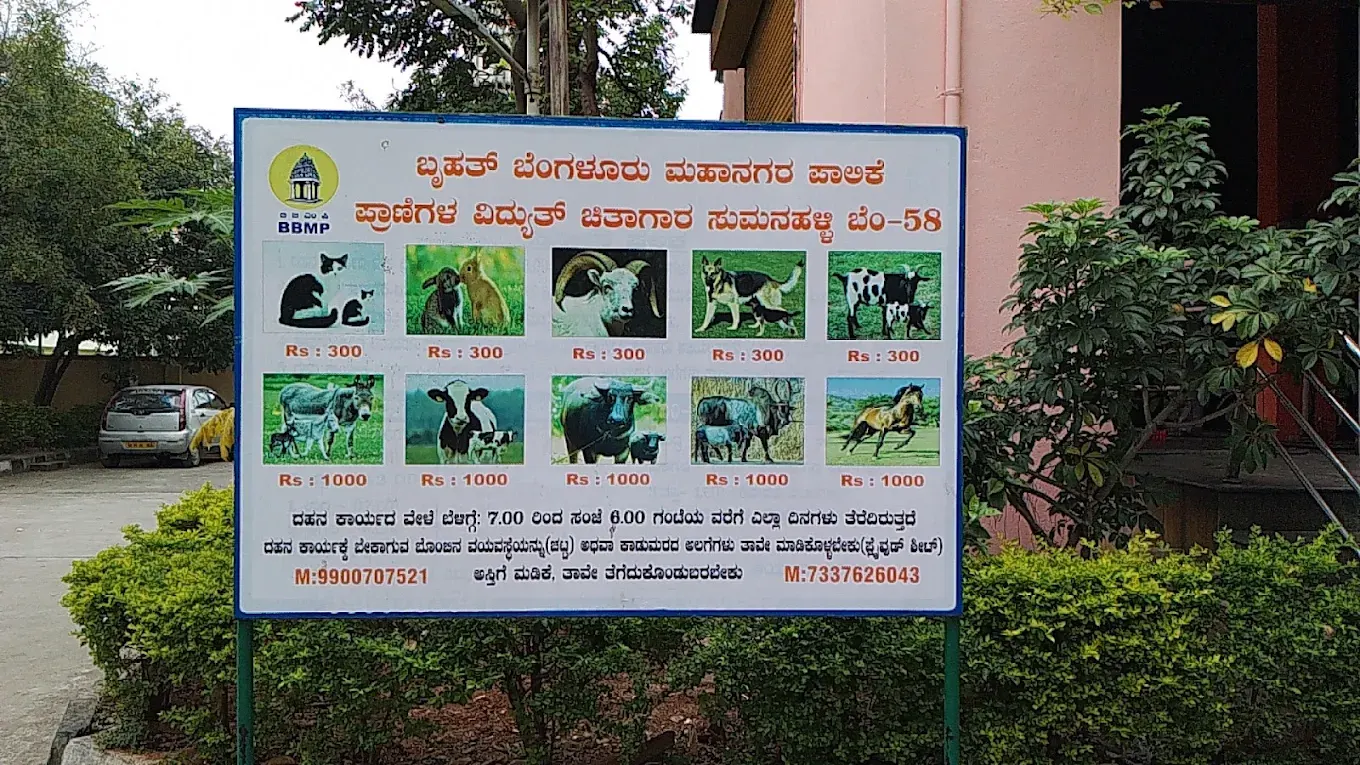 The BBMP Electric Crematorium by the Bruhat Bengaluru Mahanagara Palike (BBMP) is Located centrally within the city at outer ring road, Magadi Road. This Sumanahalli Crematorium facility is equipped with three electric furnaces, all functioning at full capacity to ensure timely services. A dedicated prayer and ritual room nearby allows families to carry out final ceremonies in a calm, respectful and private environment.