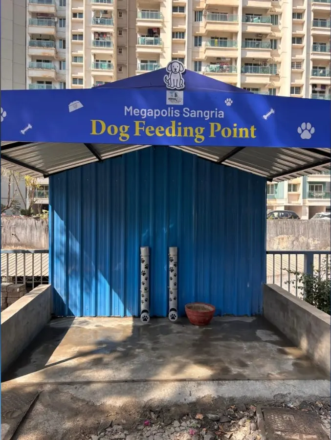 By creating this structured space, the Megapolis Sangria is promoting a healthier and safer environment for both the dogs and the community. This feeding point reflects a growing awareness and responsibility towards the welfare of stray animals in Pune Area.