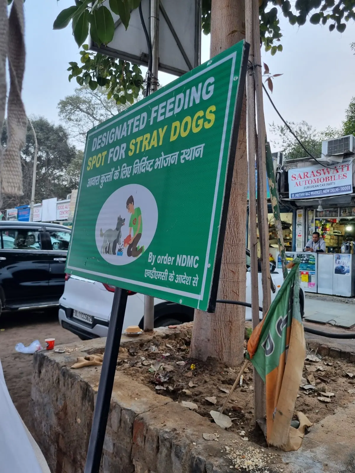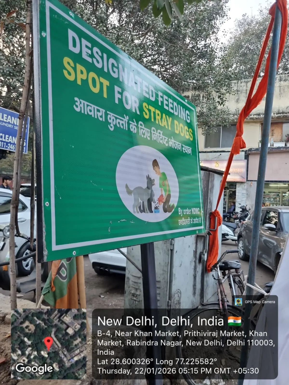 This Dog Feeding Point is located at front of Shop no. 38, Auto Shoppe, Prithiviraj Market, Khan Market and it is an officially designated feeding area created by the New Delhi Municipal Corporation to support the welfare of stray dogs and promote responsible feeding practices.